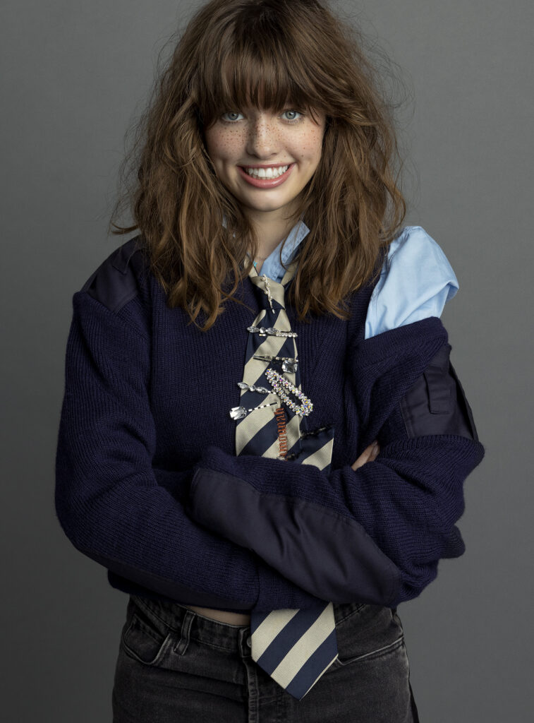 EA: Honestly, it was one of the best experiences of my life. It was an eight-month shoot and I loved every minute of it. Alex [Molony] and I met when we were 12 years old, and then shooting was delayed a year due to the pandemic, so it’s been kind of wild watching each other grow from children to teenagers. Alex’s voice dropped, I grew three inches, and we are no longer the children we [were] three years ago!